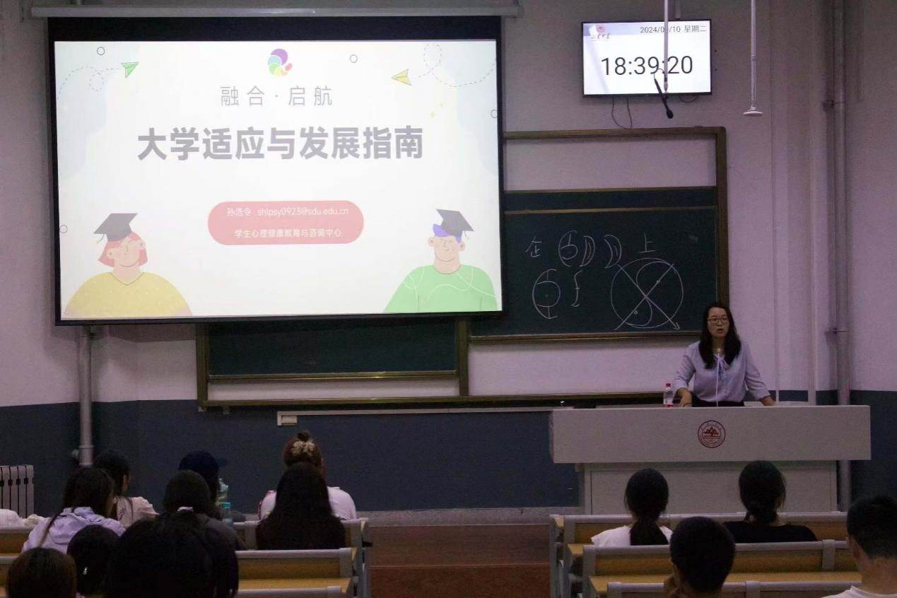9月10日,冰球突破豪华版官方网站开展心理健康教育讲座,学生心理健康教育与咨询中心专职教师孙浩令老师以“融合·启航 --大学适应与发展指南”为主题,通过真实案例分析,让学生更好地理解心理健康问题,学习应对策略,提高学生对心理问题的关注度,增进心理素质和调节技能,增强新生心理素质和应对能力,尽快实现从中学到大学的心理转变和角色转变。